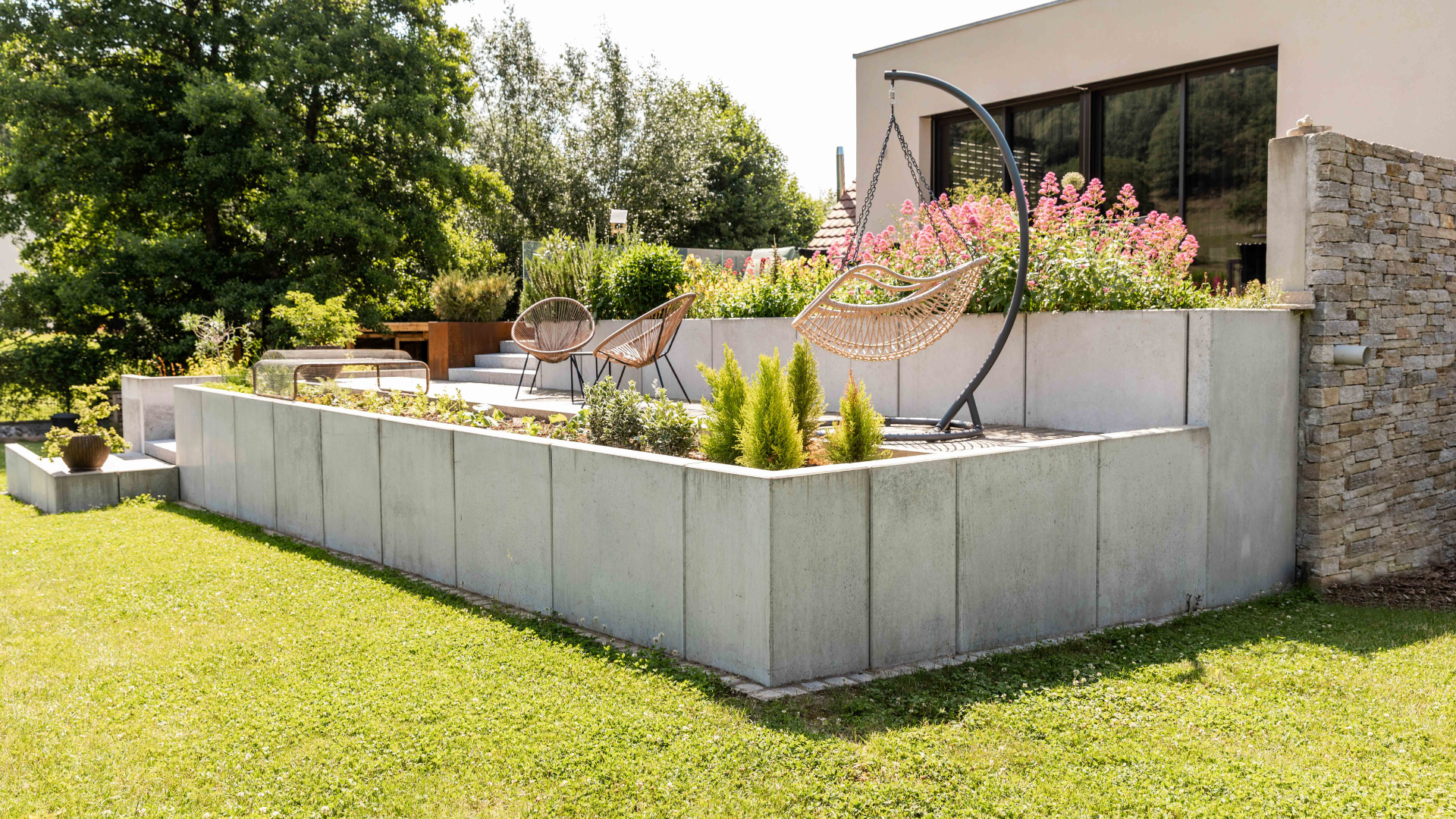 Les jardins de la maison W ont été pensés comme un dégradé de niveaux et de matériaux en cohérence avec la nature et le paysage environnants.