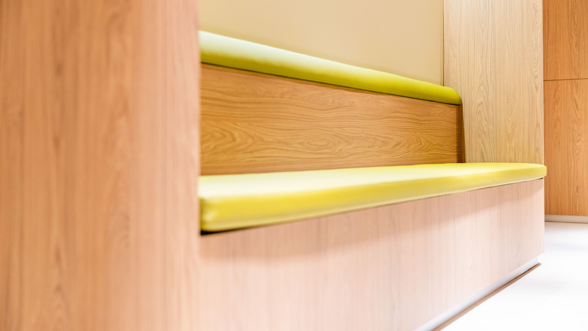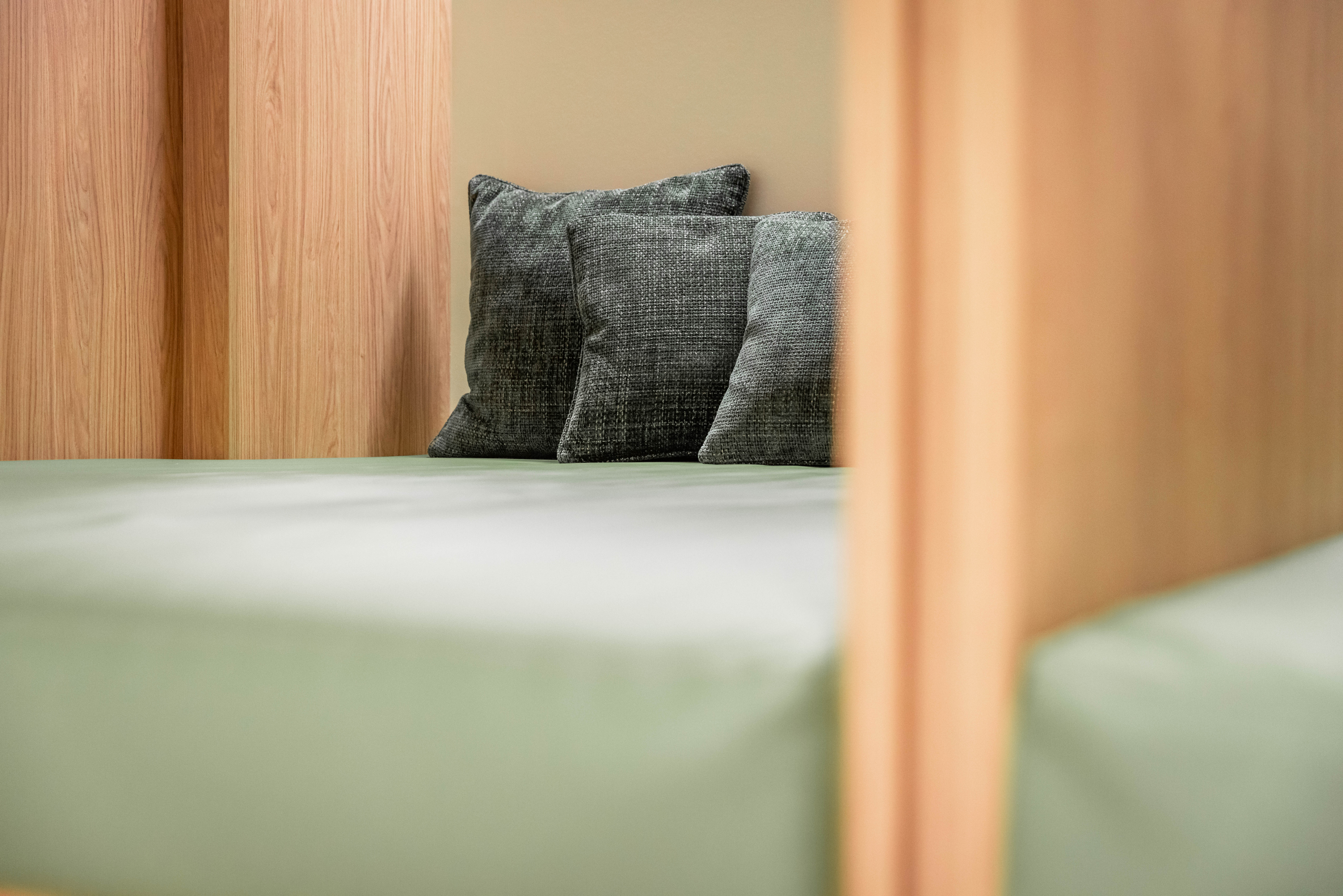 L’élégance du bois en alliance avec les teintes vertes rappelle l’esprit nature et viticulture de l’établissement.